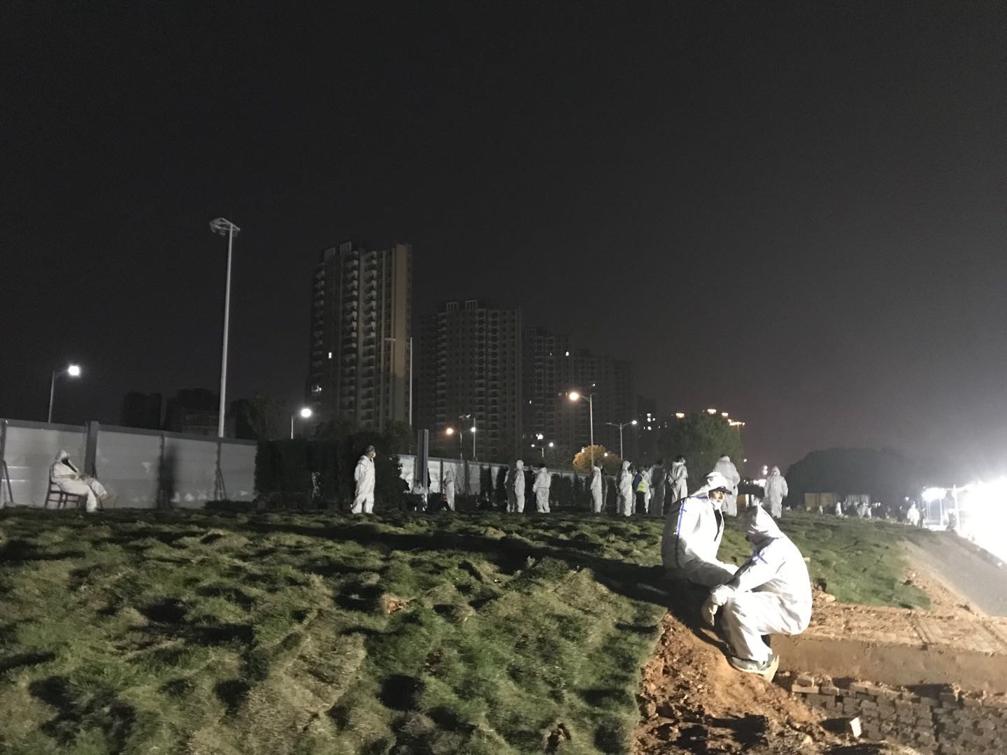 ? ? ? 根據(jù)施工任務(wù)開始組織現(xiàn)場(chǎng)工作,來到火神山第一天,在公司領(lǐng)導(dǎo)的統(tǒng)一指揮下,我們有序完成了火神山醫(yī)院的初步測(cè)量及平整場(chǎng)地工作。夜深回到隔離酒店后,發(fā)現(xiàn)爸媽還在等著和我視頻,盡管還是不斷重復(fù)著對(duì)我的關(guān)心,但是看著他們臉上的表情已不像昨天那樣充滿著擔(dān)憂,更多的是支持我,讓我注意休息,等我抗疫平安回來。到后面工期更緊,為縮短任務(wù)時(shí)間,我們整個(gè)團(tuán)隊(duì)一起爭(zhēng)分奪秒地進(jìn)行一系列工序,晝夜不停地堅(jiān)守在施工現(xiàn)場(chǎng);為不影響施工進(jìn)度,哪怕是暴風(fēng)雨來襲,大家也依舊沒有停歇,鉚足干勁,我們彼此加油打氣:“就是再累再困也要堅(jiān)持到底”。最終在團(tuán)隊(duì)共同的努力下,我們按時(shí)保質(zhì)完成此了火神山園區(qū)24000平方綠化任務(wù)。