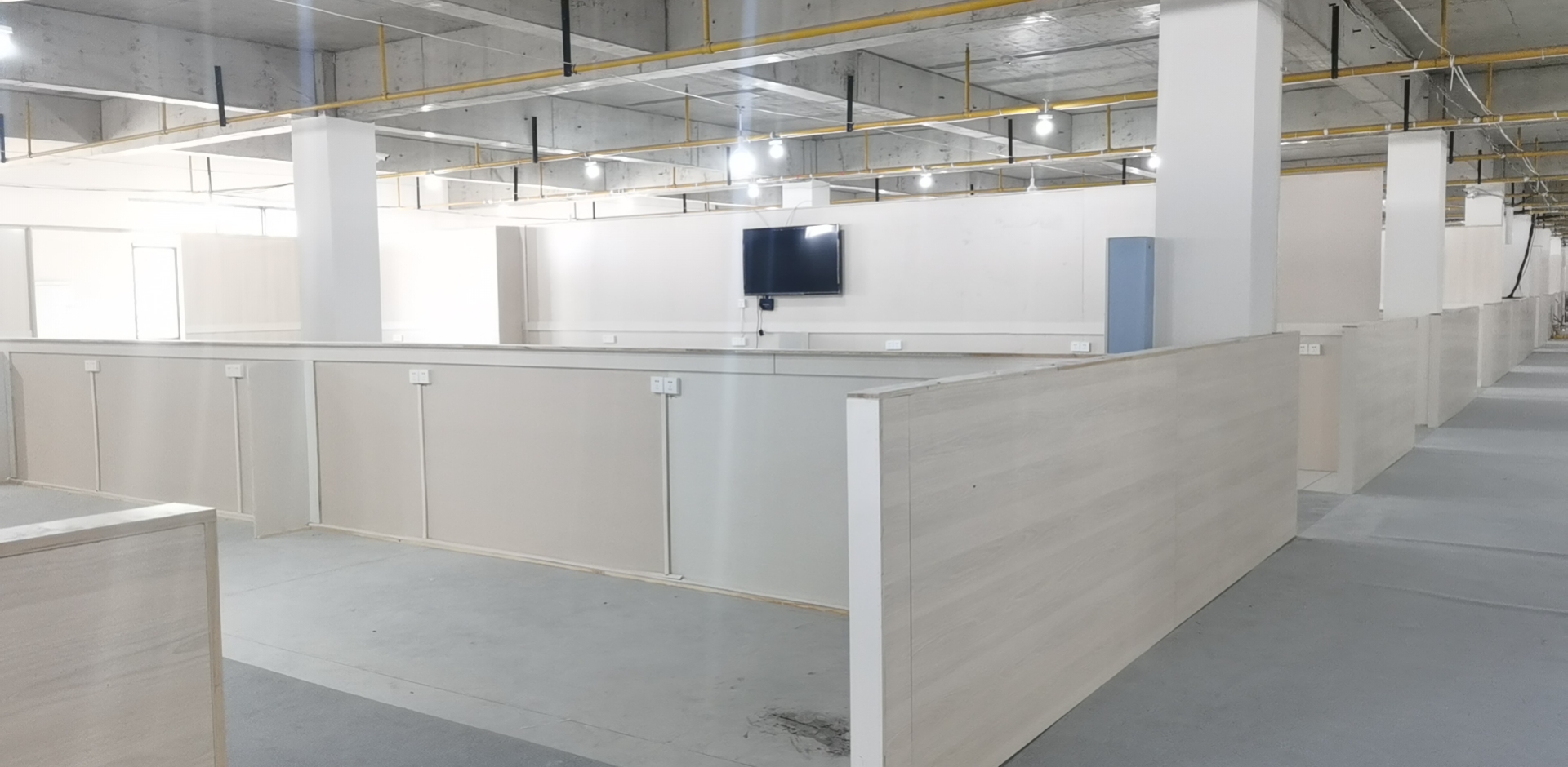 ? ? ? 為了順利完成任務,2月16日清早,休息不足4小時的項目人員便趕忙開始進行第一階段的施工,并于17日凌晨完成4層樓共計280張隔板、28扇門的施工,為確保第二階段施工能盡早開始,完工的4層樓當晚便與院方進行交接,經驗收合格。2月17日,病人正式入住。