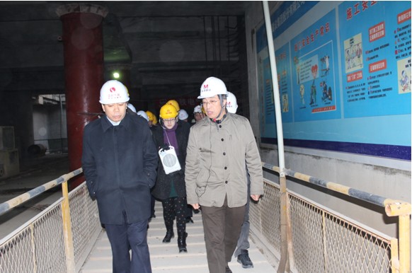 隨后,徐憲平一行深入到地下負二層,親臨地鐵施工現(xiàn)場,參觀地下隧道施工以及維護結(jié)構(gòu),見證洪山廣場站的施工過程。隨行人員向其簡要介紹了隧道施工情況。他指出,在軌道交通建設(shè)中,要堅持科學(xué)規(guī)劃、有序建設(shè),確保安全第一。