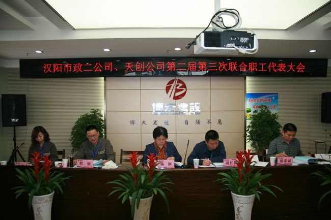 2015 年 4月 16日上午 9: 00,漢陽(yáng)市政二公司、天創(chuàng)公司第二屆第三次聯(lián)合職工代表大會(huì)在閩東國(guó)際 26樓會(huì)議室召開(kāi)。大會(huì)應(yīng)到職工代表 39人,實(shí)到 38人。漢陽(yáng)市政建設(shè)集團(tuán)公司領(lǐng)導(dǎo)出席了本次會(huì)議。