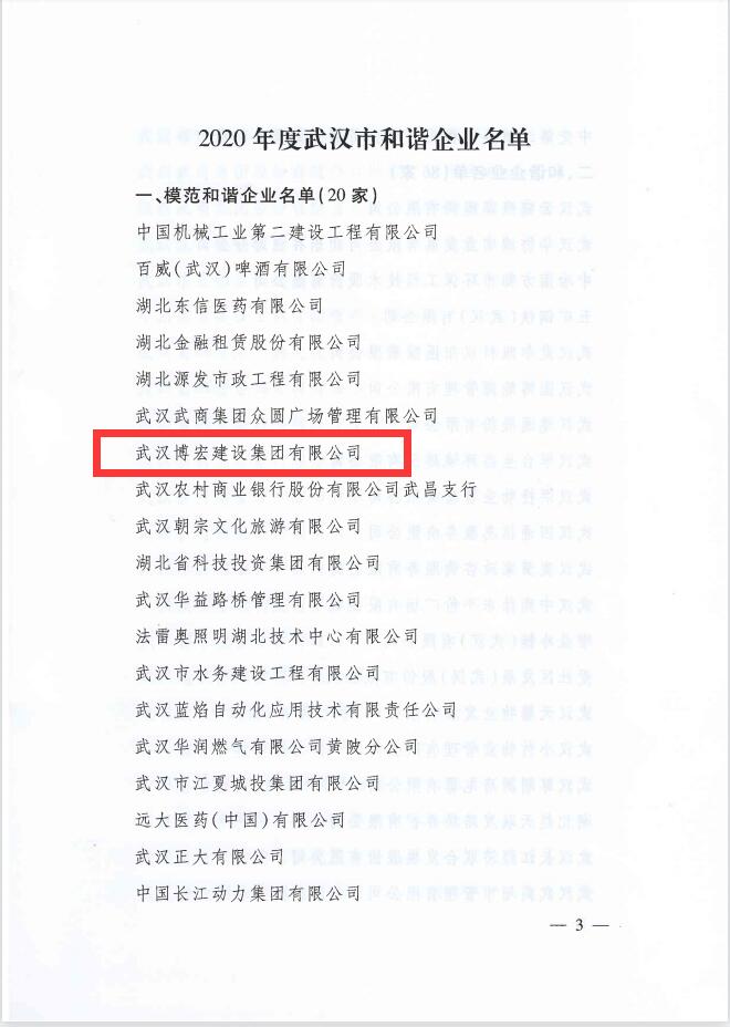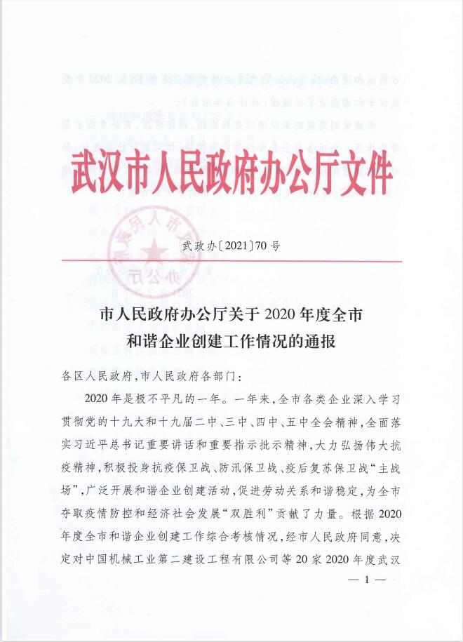 近日,根據(jù)2020年度武漢市和諧企業(yè)創(chuàng)建工作綜合考核情況,漢陽市政博宏公司獲評“2020年度武漢市模范和諧企業(yè)”榮譽稱號,琴臺公司獲評“2020年度武漢市和諧企業(yè)”榮譽稱號。此前,鐘鑫公司獲“2014年度武漢市和諧企業(yè)”,集團公司獲“2016年度武漢市模范和諧企業(yè)”,致遠公司獲“2017年度武漢市模范和諧企業(yè)”,天創(chuàng)公司獲“2019年度武漢市模范和諧企業(yè)”,五公司獲“2019年度武漢市和諧企業(yè)”。截至目前,漢陽市政已有7家單位獲評“武漢市模范和諧企業(yè)”和“武漢市和諧企業(yè)”。