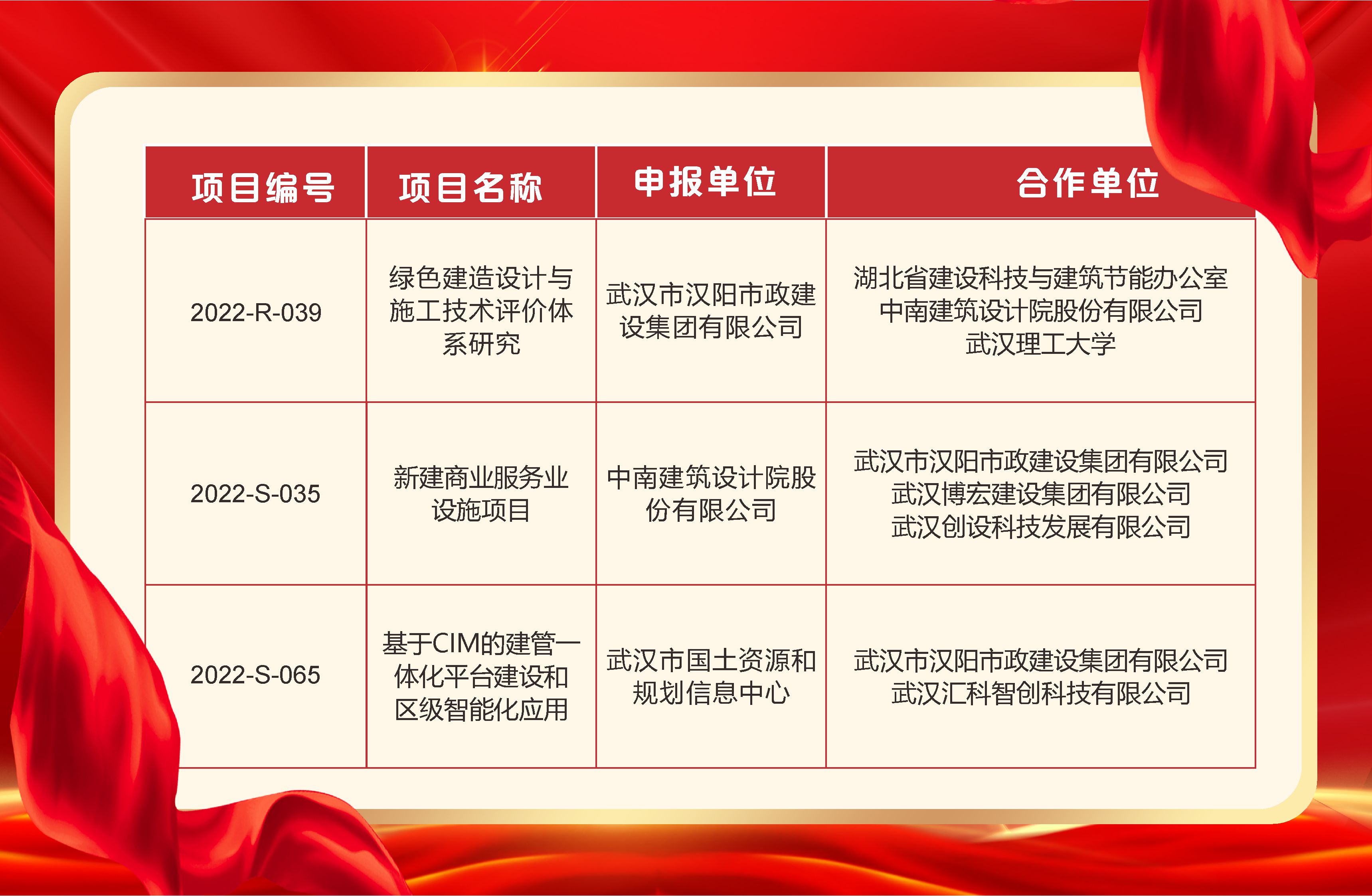 近日,國家住房和城鄉建設部公布2022年科學技術計劃項目評審結果,湖北省共11個項目獲批立項。漢陽市政獲批3個項目,軟科學研究類1項,科研示范工程類2項。首次申報即取得可喜成績,標志著公司在國家級科研項目上取得實質性突破,具有里程碑意義。