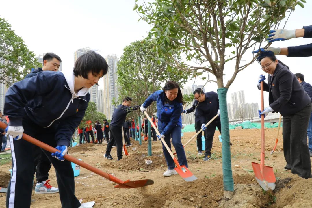 最后,植樹環(huán)節(jié),大家紛紛戴上志愿者袖章、馬甲及帽子,進行植樹前的準備工作。“咔咔咔……”,現(xiàn)場植樹鏟土的聲音此起彼伏,大家在這里揮灑汗水,種下一片青翠,系掛祝福書簽,許下更美好的未來。