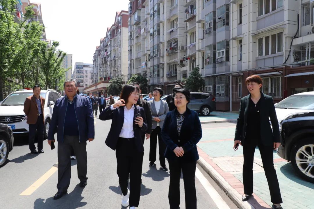 4月26日,濟南市政協副主席劉霞一行調研考察漢陽市政承建的倒口西村二院、芳草園小區、桃花島城市花園一期老舊小區改造項目。