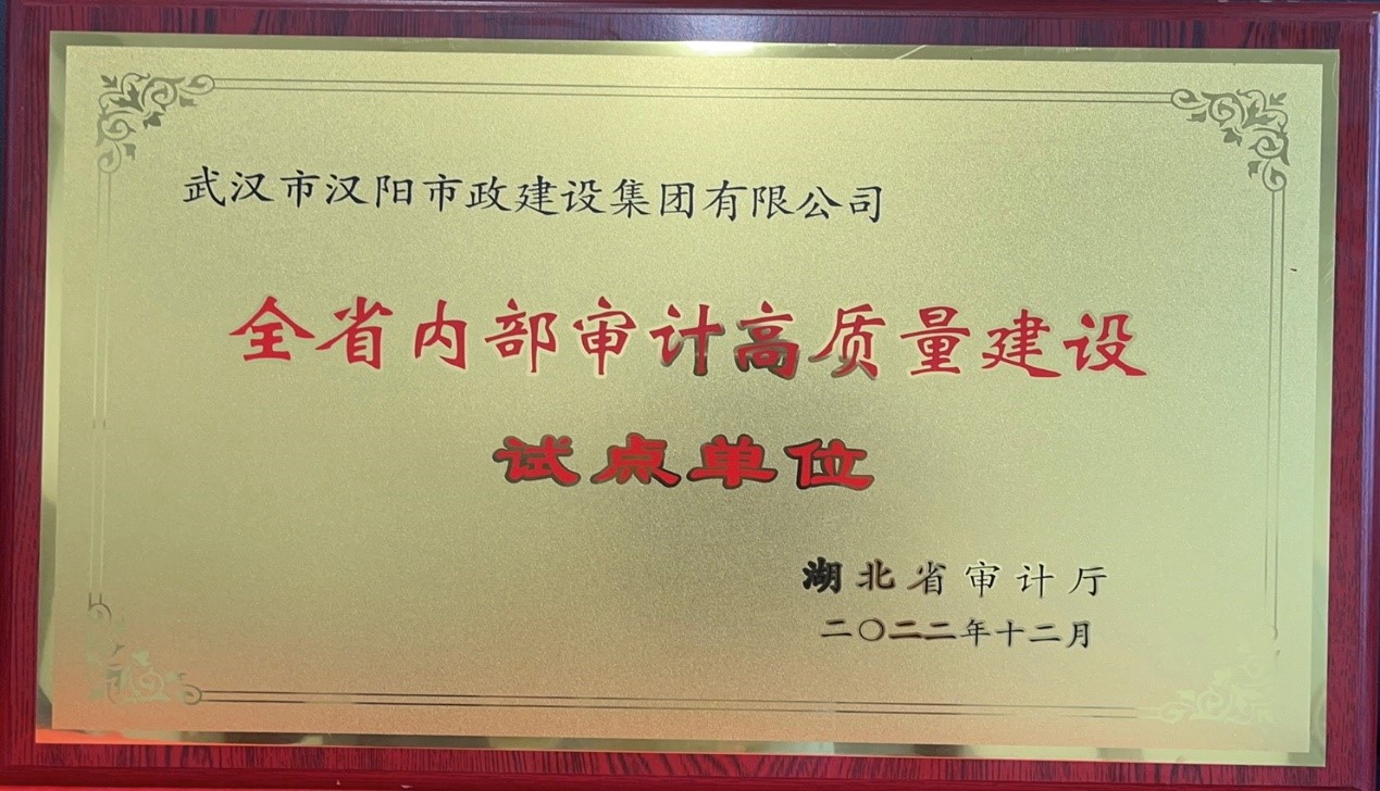 5月16日,湖北省審計廳舉辦了全省內部審計高質量建設試點單位授牌儀式,漢陽市政獲“全省內部審計高質量建設試點單位”榮譽稱號。集團總經濟師高麗作為代表接受授牌。