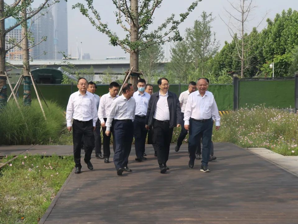 5月23日上午,湖北省住建廳黨組書記、廳長劉豐雷一行蒞臨武昌生態文化長廊工程(友誼大道-建設十路)PPP項目,調研鐵路文化遺址公園開發利用、四美塘工業遺址活化利用情況。武漢市委常委、常務副市長陳勁超,省住建廳黨組成員、副廳長劉震和相關調研組成員參加調研。漢陽市政黨委書記、董事長嚴悌文陪同調研。