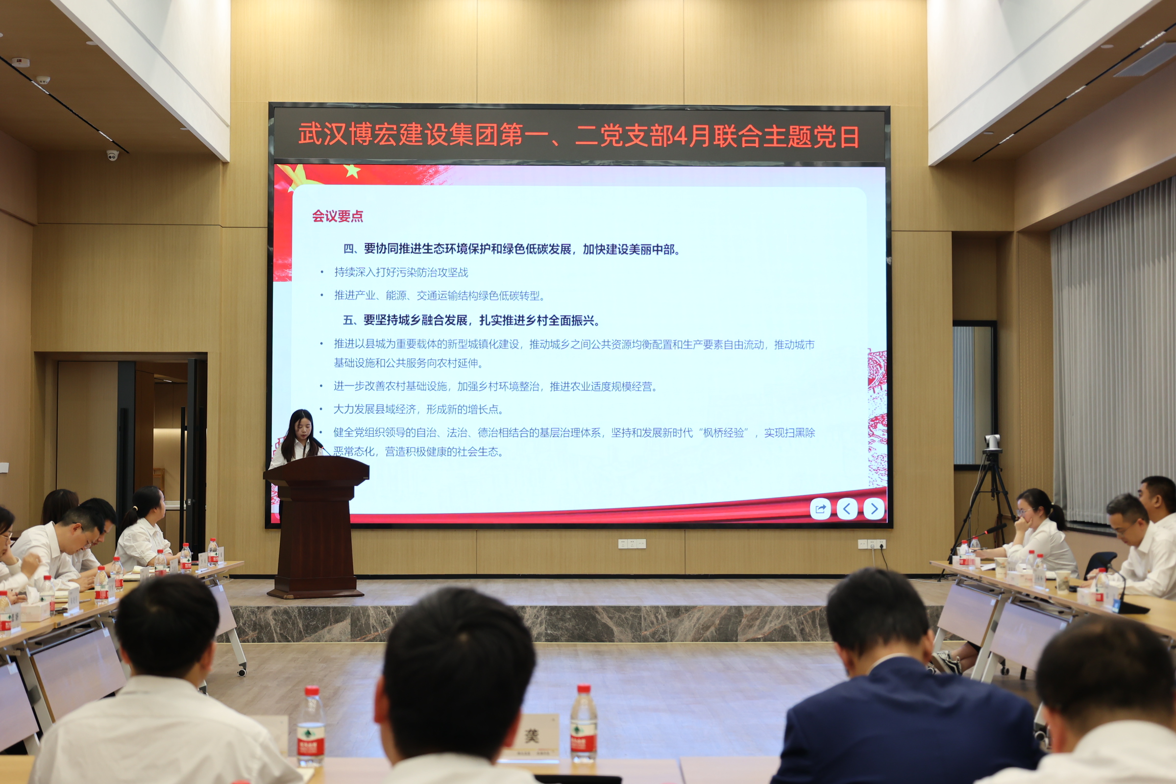 黨員文倩領學習近平總書記在新時代推動中部地區崛起座談會上的重要講話《在更高起點上扎實推動中部地區崛起》。習近平總書記強調,中部地區是我國重要糧食生產基地、能源原材料基地、現代裝備制造及高技術產業基地和綜合交通運輸樞紐,在全國具有舉足輕重的地位,要一以貫之抓好黨中央推動中部地區崛起一系列政策舉措的貫徹落實,形成推動高質量發展的合力,在中國式現代化建設中奮力譜寫中部地區崛起新篇章。各位黨員同志紛紛表示,將認真貫徹落實習近平總書記的重要講話精神,搶抓機遇、銳意進取,以強烈的責任意識、擔當意識扎實開展各項工作,推動公司更好更快發展,為培育和發展中部地區新質生產力貢獻更多的“博宏力量”。