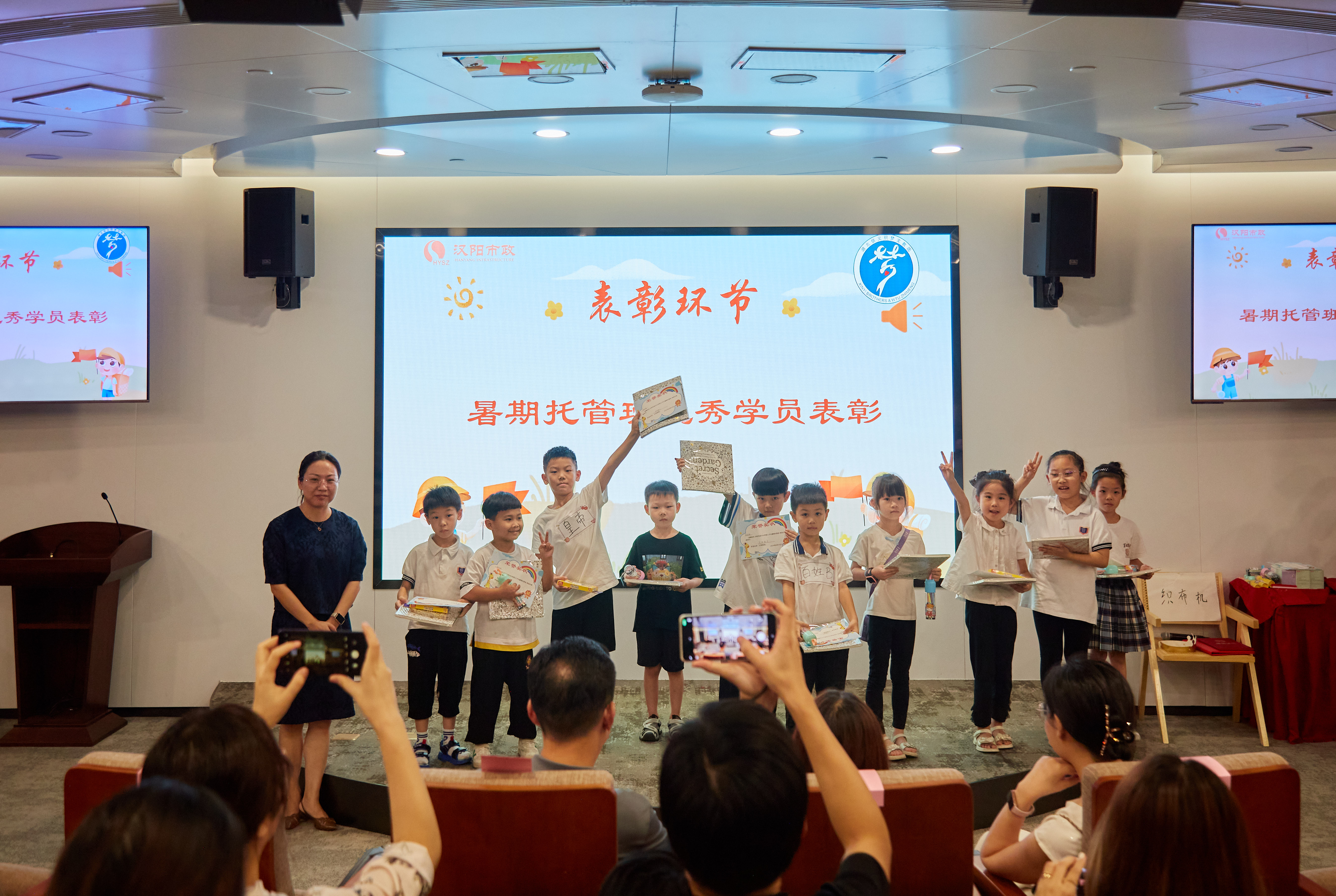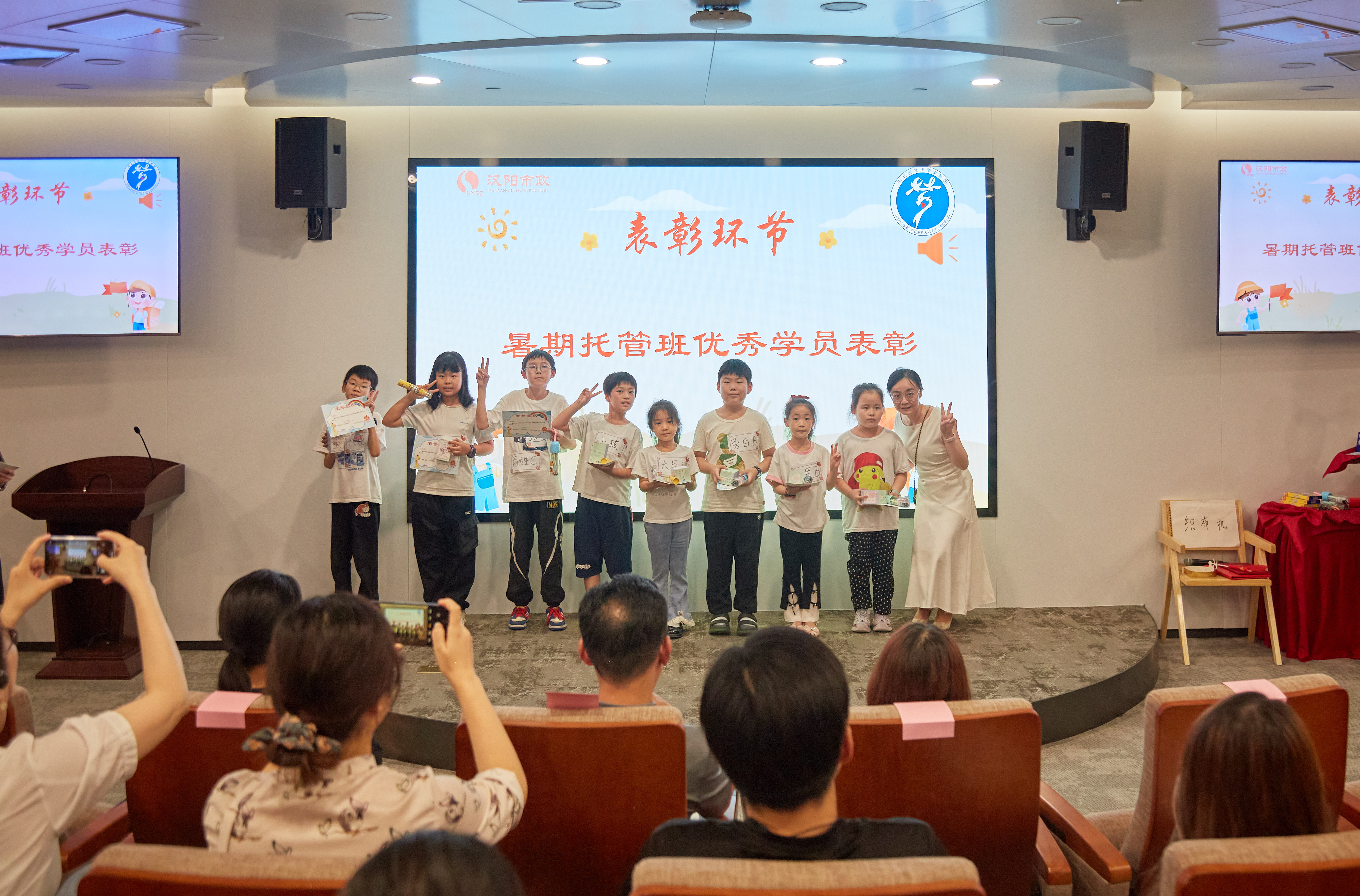 本次結(jié)營儀式在溫馨的暖場視頻里拉開序幕,暖場視頻記錄了32位漢陽市政職工子女在暑期托管班中學(xué)習(xí)生活的點(diǎn)滴日常。
